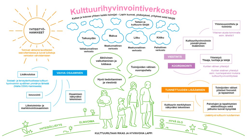 Fasilitoimme kulttuurihyvinvoinnin teemaan keskittyvän työpajan ja visualisoimme tulokset osana Lapin luovien alojen ja kulttuurin kasvuohjelmatyötä.
